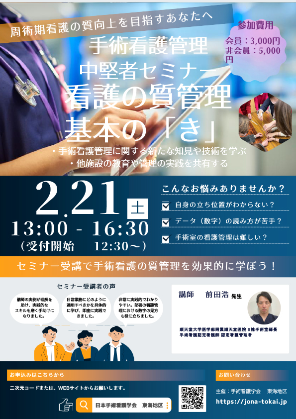 手術看護管理中堅者セミナー管理 手術看護の管理 基本の「き」研修のお知らせ
