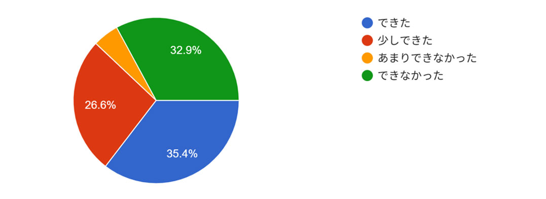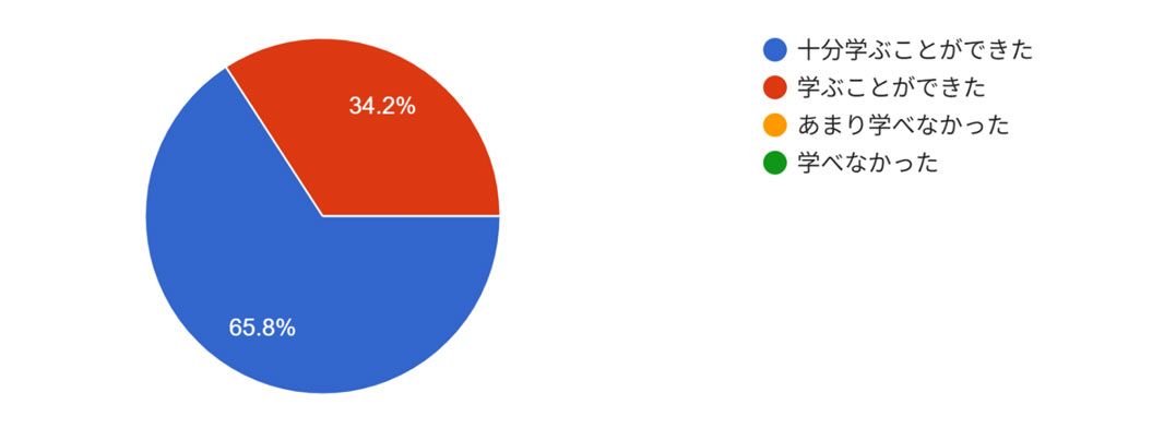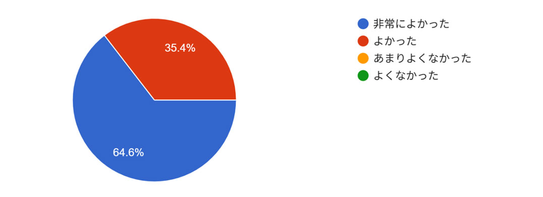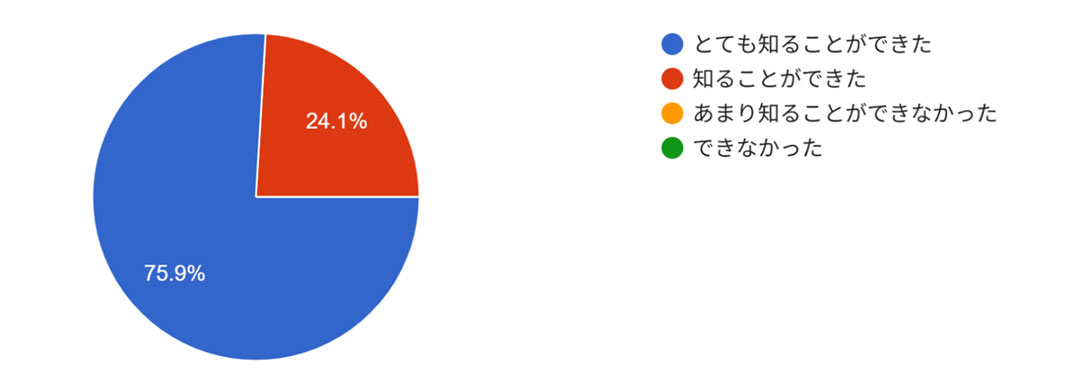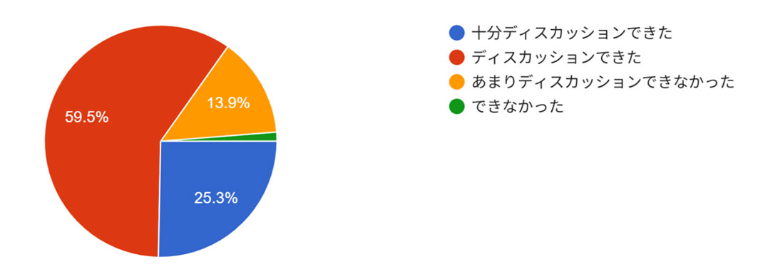 - 聞きたいことは聞けた。でも実技の時間が大半で、話し合う時間は短めだったので、みんなが聞けたか分からない。自分は聞けた。