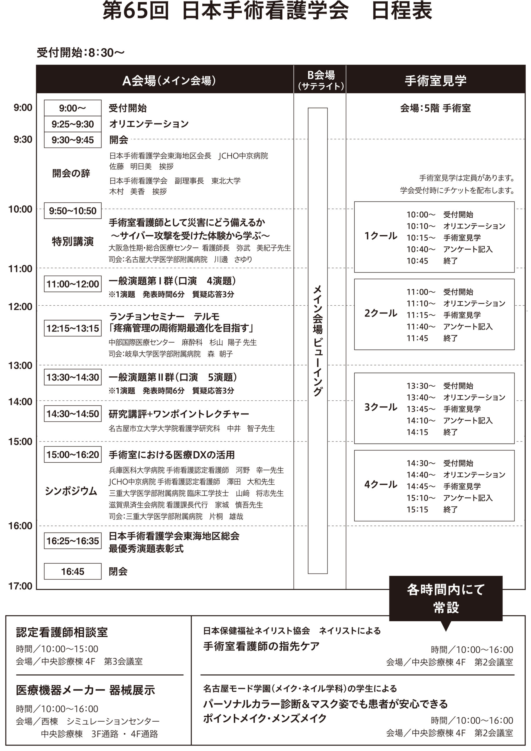 第65回日本手術看護学会東海地区大会の日程表と案内図をアップしました。