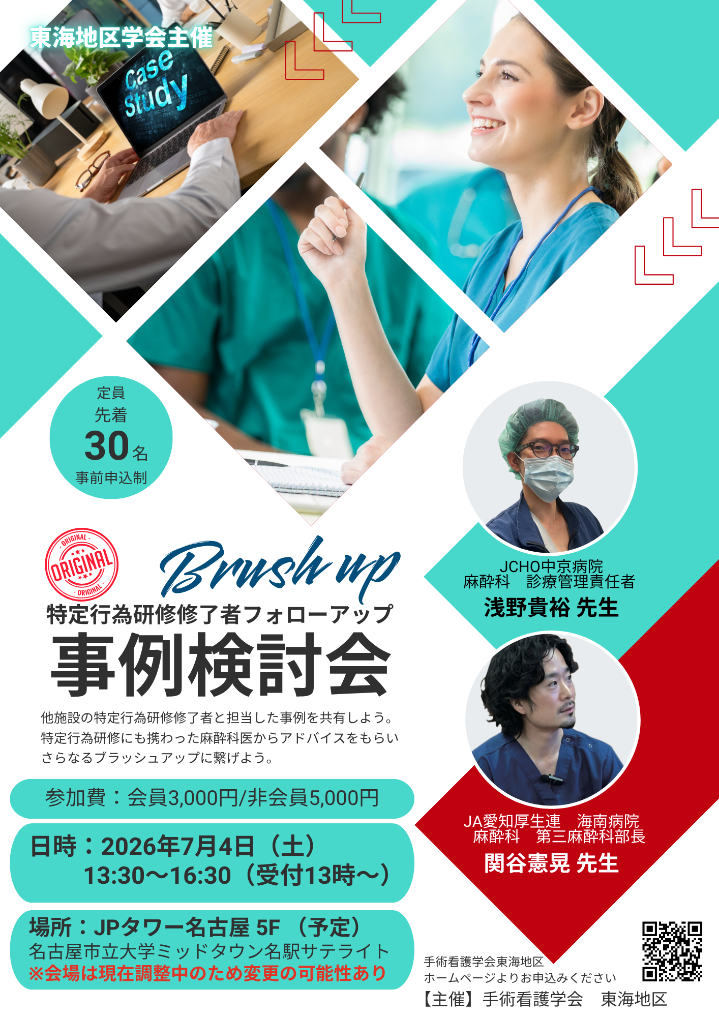 第64回日本手術看護学会東海地区学会の演題募集の受付を開始しました。